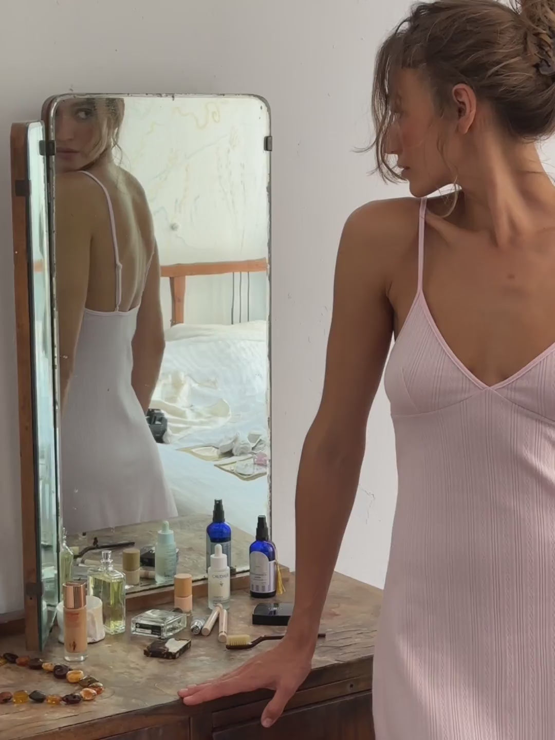 Odrobina flirtu i codziennego uroku. Miękka, wygodna mini o kroju klasycznej halki, z delikatną braletką otulającą piersi. Uniwersalna i swobodna — do tańca boso w kuchni, na spacery w letnie popołudnia, do noszenia wtedy, gdy chcesz czuć się pięknie bez wysiłku.